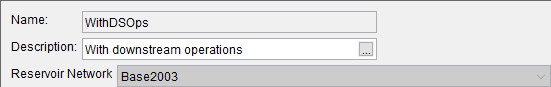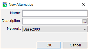 The first step in creating an Alternative is to give it a Name and Description, and then select the reservoir Network you want to use.
