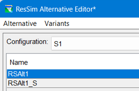 NEW IN RESSIM 4.0ResSim Variants allow for variations of an alternative for use with standalone (default) and use with different program orders in CAVI and HEC-WAT, preserving the other aspects of the alternative. In ResSim 3.5, if any ResSim alternative has at least one variant, the variants are shown on subtabs of the Time Series tab in the ResSim Alternative Editor, whether ResSim is launched in standalone or from the CAVI or WAT. In ResSim 4.0, only the standalone ResSim will be displayed. However, if there are any Variants in the model, a Variants menu drop down will appear when the user selects the Time-Series or Global Variables tab. As shown in Figure: Alternative Editor Variant Menu. For more information on Variants, see ResSim Variants.
