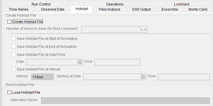 The Hotstart Tab is used to create or use initial conditions based on a prior run.