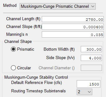 Muskingum-Cunge Stability Control—Enter the default reference flow and the routing timestep subintervals.