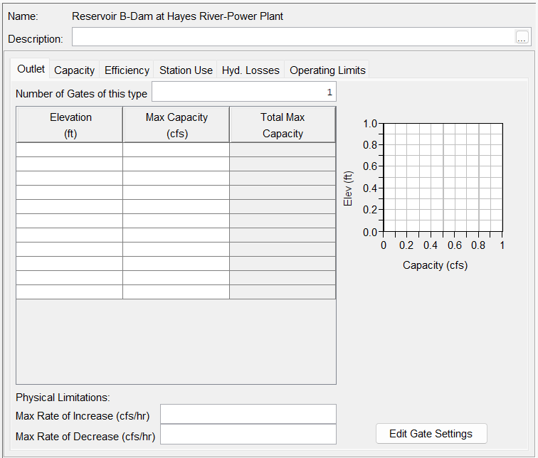 Note: Tailwater Elevation must be specified at or a power plant in the Reservoir Tree in order for the plant to properly calculate energy production.