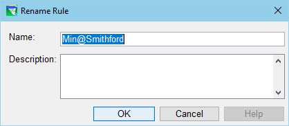 Right-click on the rule in the Zone-Rules Tree and select Rename from the context menu. The Rename Rule dialog will open ("Figure: Rename Rule Dialog").