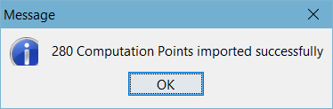Once you have identified which points to import, click Import. The Importer will close, and you will get a message box telling you how many computation points imported ("Figure: Successful Import Message").
