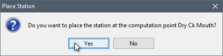 If the selected location for the station is on a CCP, a Place Station message window (Place Station at the Computation Point – Confirmation Message) will appear, asking the user to confirm that the station should be placed at the identified computation point.