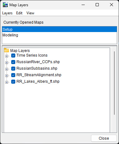 - In the Setup tab, go to the Maps menu and select Map Layers. The Map Layers dialog will open.