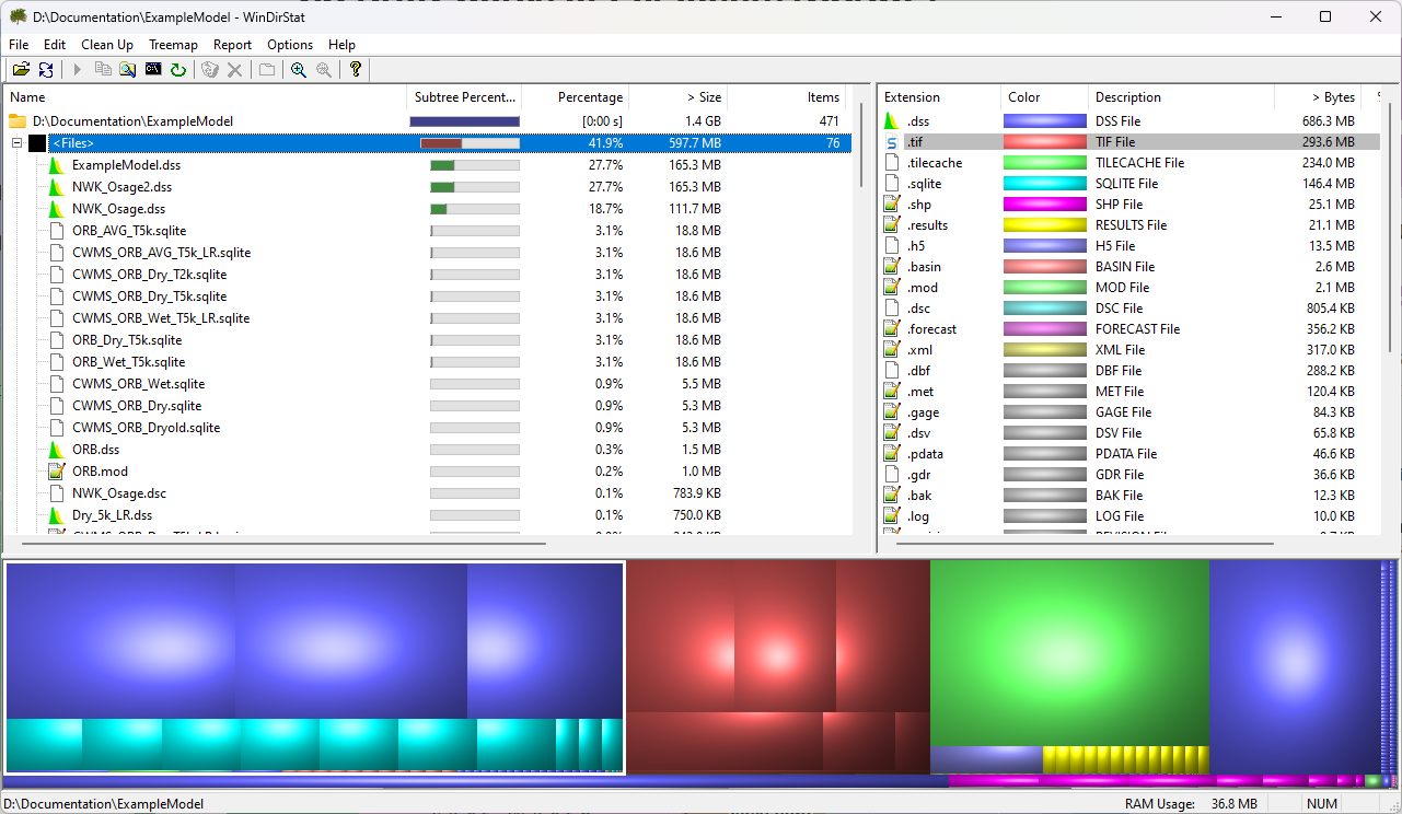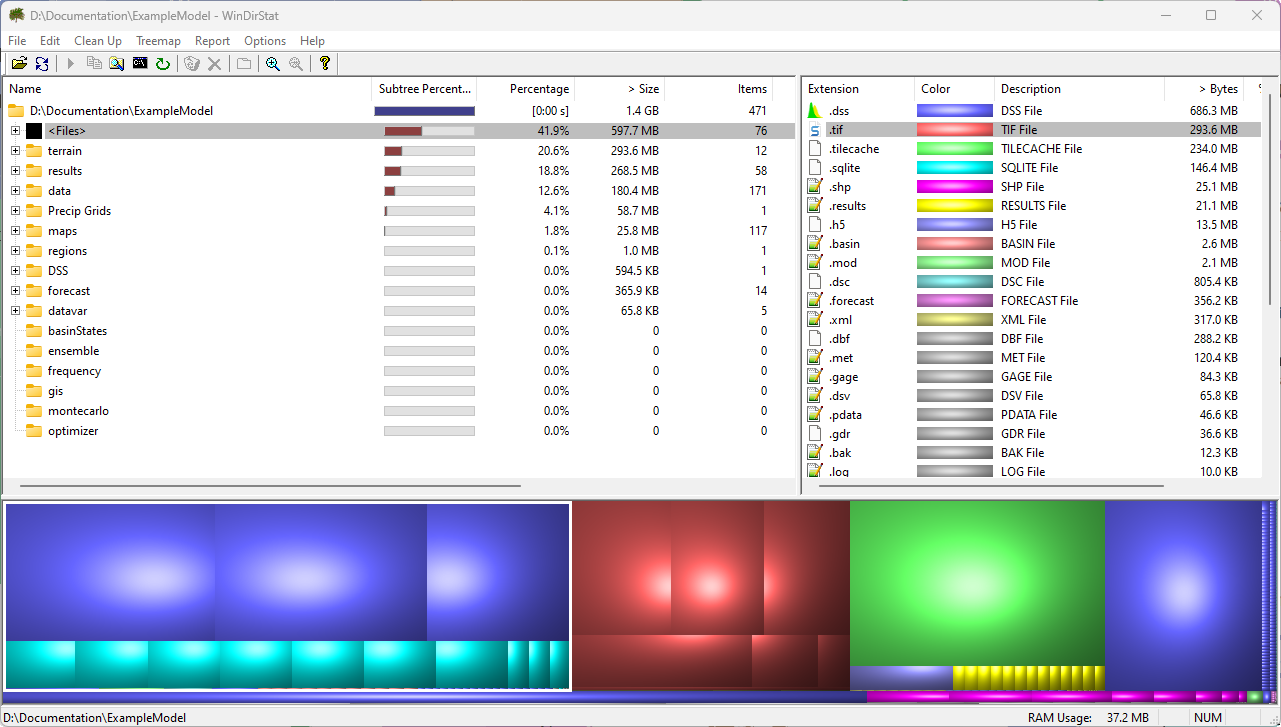 1. Open WinDirStat and point it to the HEC-HMS folder (<watershed name>\hms).
