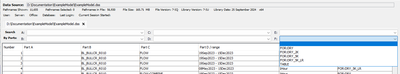 3. Open the ExampleModel.dss file using HEC-DSSVue.