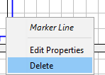 To delete a marker line in a plot, right click on the plot with the Pointer Tool, from the shortcut menu, click Delete.