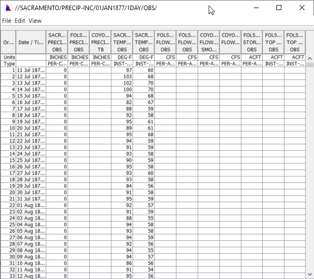 Click Tabulate to view plot data in tabular form. A dialog box will open displaying the data in tabular form (below). For more information about tables, refer to the Chapter on Utilities.