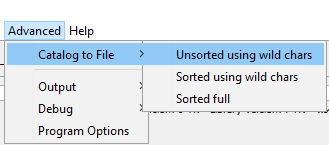 | Unsorted using wild chars | export a subset (using wild * characters) catalog, faster because it is un-sorted |