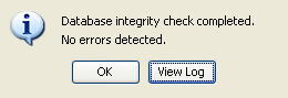 3.A status report message window will open (below) after the integrity check has finished. To view the integrity report, click View Log.