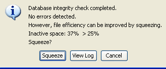 5.If you have a lot of unused space due to deletions or other actions or the internal tables are not suited well to the number of data sets, a message will be displayed saying so. It is recommended that you squeeze the file to remove unused space and rebuild the internal tables.
