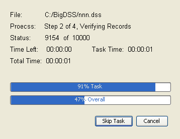 2. For larger files, the Database Integrity Check dialog box (below) will open providing the status of the operation. There are four major steps in the operation. You can cancel at anytime without hurting anything. Generally, the process goes faster once the first step has been completed.