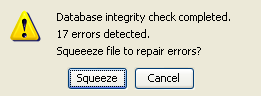 If an error is detected, it is recommended that you make a backup of your file and then squeeze the file. Squeezing rebuilds the file, using a brute force approach that should retrieve all data possible within the file. You should review any critical data after you have squeezed it, as the same event that broke links within the file may have changed data values also.