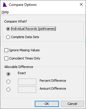To set options for comparing, select the 'With Options' variation of the menu, and the following dialog will appear.
