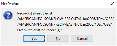 4. If the record(s) already exist in that file, a message box will appear asking if you want them to be overwritten,.