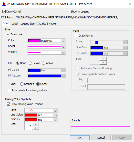 5. If you would like to see missing values, check Draw Missing Value Symbols and select a Style, Line Color, Fill Color, and Size for the missing value points.