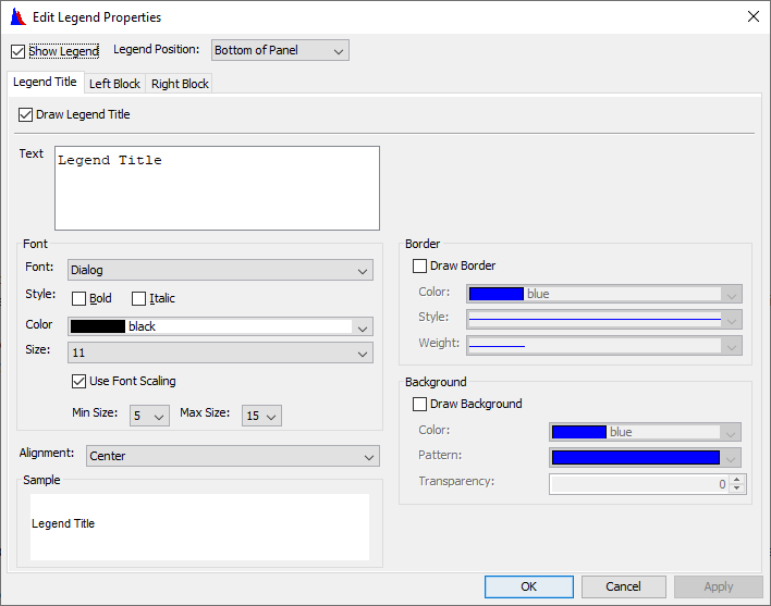 5. Select the Alignment to position the block's text to the Left, Right, or Center of the legend.