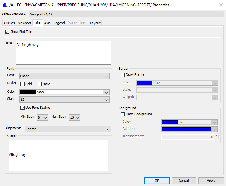 8. The Sample box provides a preview of your plot title.
