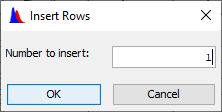 5. For a paired data table, enter the number of rows you would like to insert. From the Edit menu, click Insert Rows, the Insert Rows dialog box will open. In the Number to insert box, enter the number of rows you would like to add. Paired data tables also allow you to add additional columns, from.