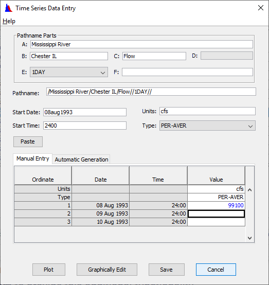 Time series data, paired data and text data can be manually entered using the Manual Data Entry Editors available from the Data Entry menu. The following sections discuss all options in detail.