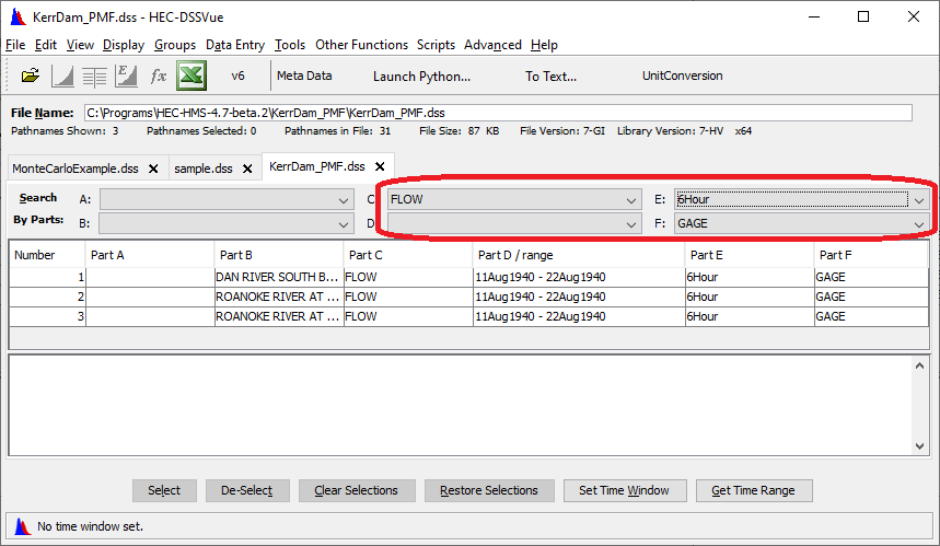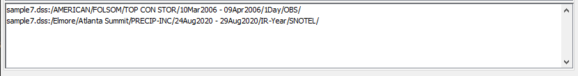displayed are from the selected tab's DSS file. If more than one file is opened, selected pathnames will include the name of the DSS file they are from. For example: