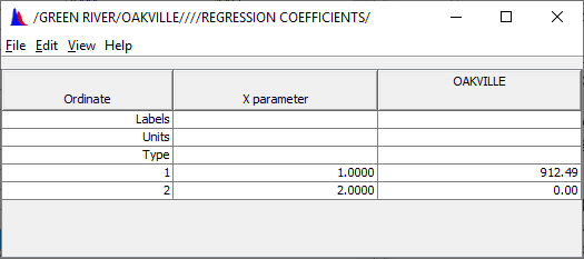 All the time series data sets must be regular interval and have the same time interval. The function filters the data to determine the time period common to all time series data sets and uses only those points in the regression analysis. For any given time, if a value is missing in any time series, the value in the resultant time series is set to missing. You can also set optional minimum and maximum value limits. Computed values in the resultant time series, which fall outside the specified range, are set to missing.