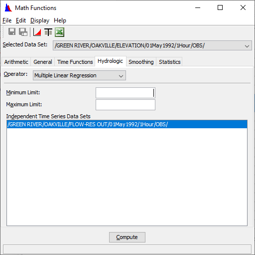 1. Choose the Hydrologic tab of the Math Functions screen and select the Multiple Linear Regression operator.