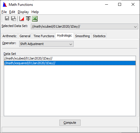 1.Choose the Hydrologic tab of the Math Functions screen and select the Shift Adjustment operator, as shown below.