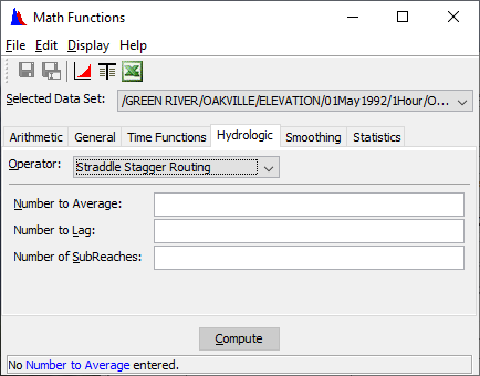The Straddle Stagger Routing function routes a regular interval time series data set by the Straddle Stagger hydrologic routing method.