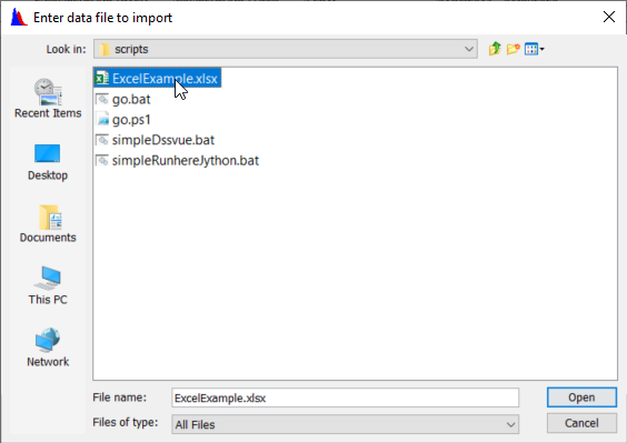 2. If your data is in a ".csv" or blank separated file, select Time Series Data instead of Excel. An example of the browsing window is shown below.