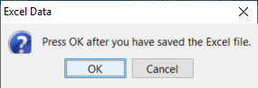 You can edit data in Microsoft Excel by selecting the pathnames that need to be edited. From the Edit menu, click Edit in Excel, an Excel Data dialog box will open (below), as well as Microsoft Excel. The data associated with the selected pathnames will be display in the spreadsheet.