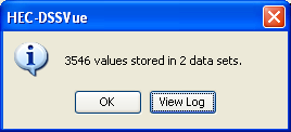 3. A message window will open (below); this window will display how many values were stored from the SHEF data sets. You can view the SHEF process log by clicking View Log.
