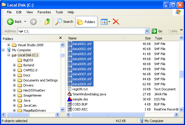 2. "Drag" the files onto the main HEC-DSSVue screen (with your HEC-DSS file that you want to import to opened.)