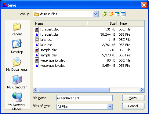 2.A Save browser will be open (below), navigate to the directory where you want the exported SHEF data to be, type the name of file in the File name box, click Save. All data will be saved in one file.