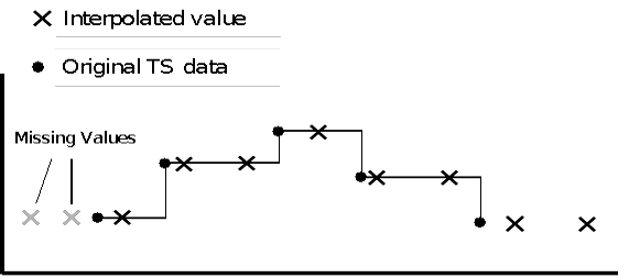 For time points in which the current time series value are missing, the value in the accumulation time series remains constant (same as the accumulated value at the last valid point location).