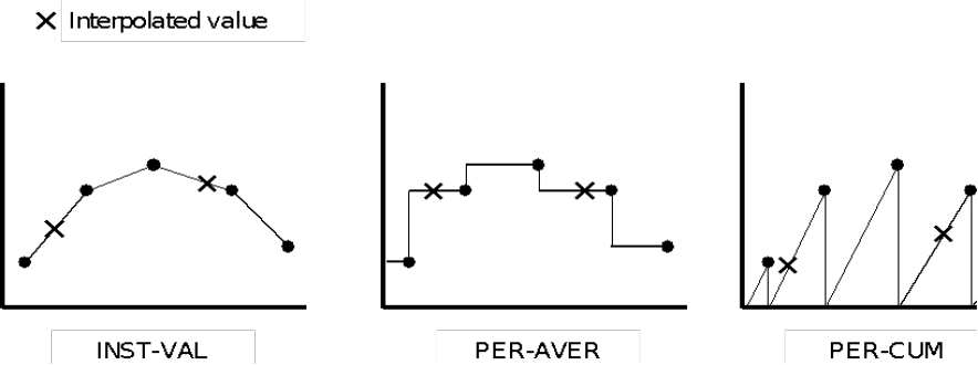 Interpolation of "INST-VAL", "PER-AVER" and "PER-CUM" Data
