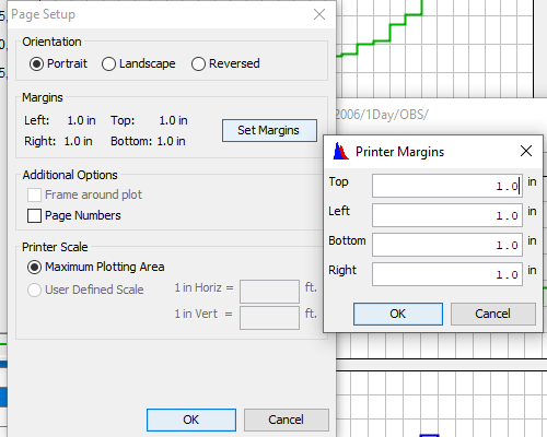 From the File menu, click Page Setup. The Page Setup dialog box will open. Here you can set the page Orientation, Margins, Page Numbers, and Printer Scale. Set Margins opens the Printer Margins dialog box.