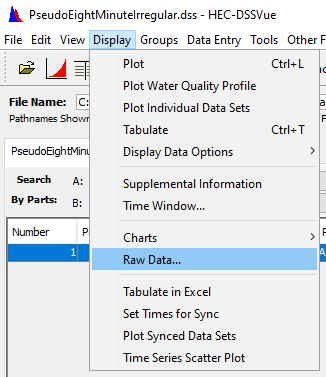 To view raw raw data select the pathname(s) of interest, then select the Menu Display→ Raw Data...