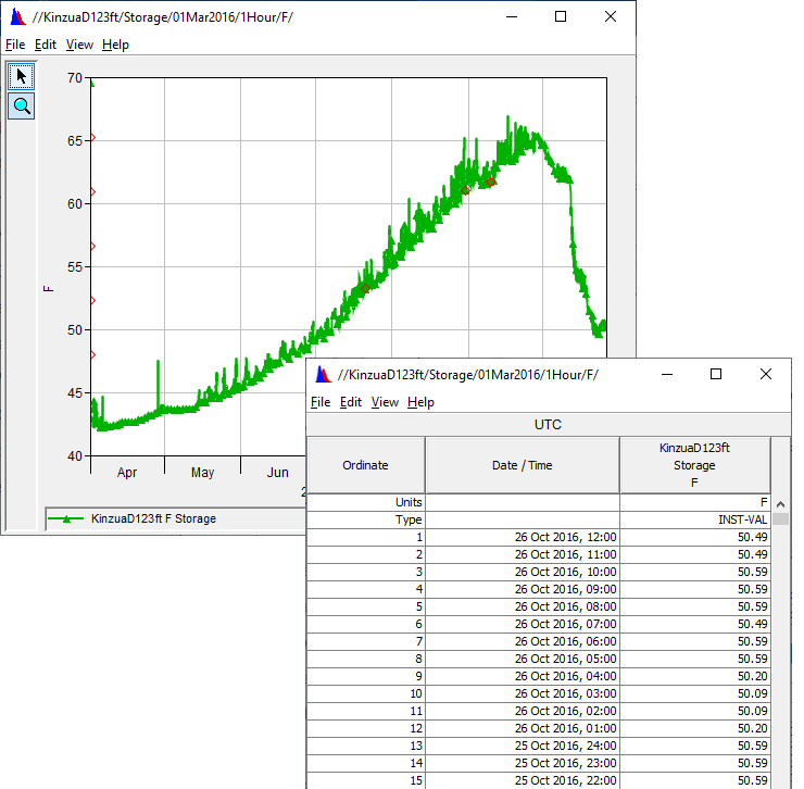 Examples of the plots and tables HEC-DSSVue can produce are shown below: