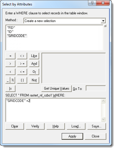 Double-click on "GRIDCODE", in the SELECT * FROM shapefile name WHERE box "GRIDCODE" appears. Click the equals sign button and then enter 2.