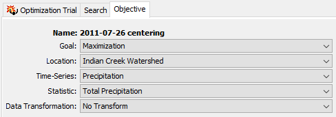 The option to optimize a Precipitation time-series and Total Precipitation statistic was added to the Optimization Trial Objective Function.  The use case is to allow the user to determine storm properties that maximize precipitation volume over an element, independent of any hydrologic processes.  This would allow for optimization of any storm parameters that change the amount of precipitation applied to an element, for example HMR-52 parameters or gridded precipitation centering.