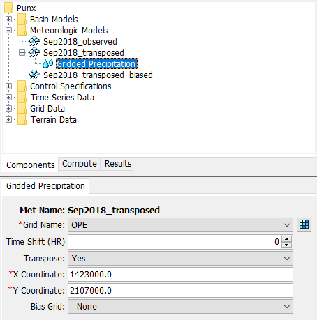 The Gridded Precipitation method in the meteorologic model has been enhanced to allow transposition of gridded precipitation. The storm center of the gridded precipitation record is transposed to the new location specified in the gridded precipitation component editor.