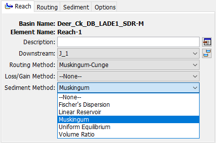 • Missing Sediment Method UI option for Reservoir when Basin Sediment Routing is Enabled.