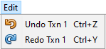 The Edit menu contains commands for cycling through the edit changes which have been made to the aggregate TIN in a particular Map Window. The undo and redo commands are similar to the undo and redo actions in a word processing program. For example, if 20 unique editing changes have been made to an aggregate TIN and then Undo Txn has been used five times, then only the first 15 edits apply. If a new edit is performed, it then becomes the 16th and final edit operation in the chain, replacing the older edit operations 16-20. Edit menu commands and the resulting actions are provided below.