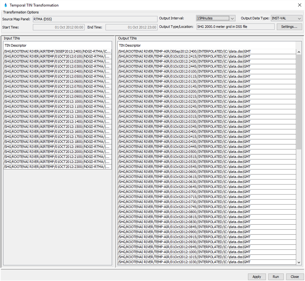 Below is a version of the the Temporal Transformation Tool when interpolation is performed. Whenever the input data is INST-VAL or PER-AVER, interpolation is performed.   For those cases, the user would only select the output interval, output data type, and output type/location in the Temporal Transformation Tool.