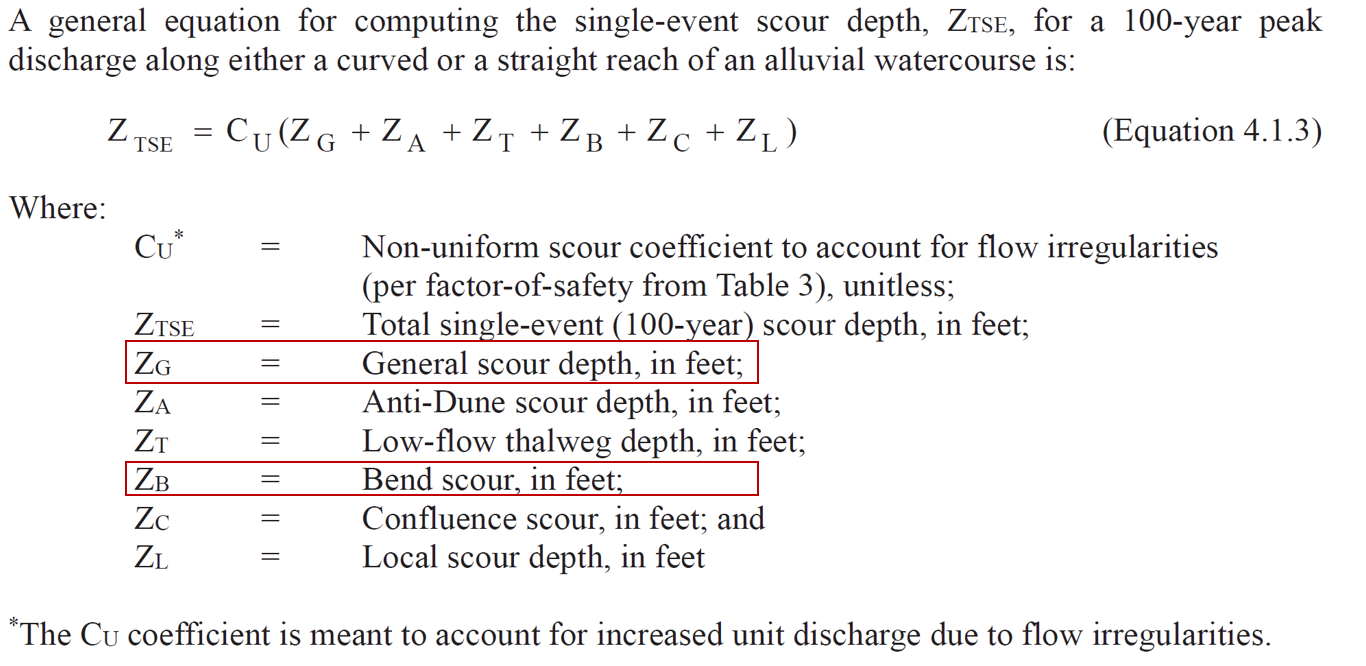 The Zeller "Bend Scour" equation includes general AND Bend Scour. The general scour equation is just the original equation with the bend component extracted. Do not add the bend and general scour results, it will double count general scour.