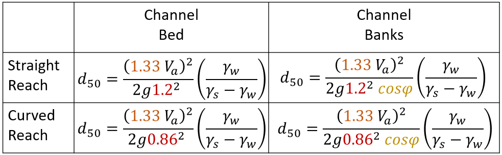 Channel and Bank Riprap Equations