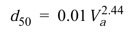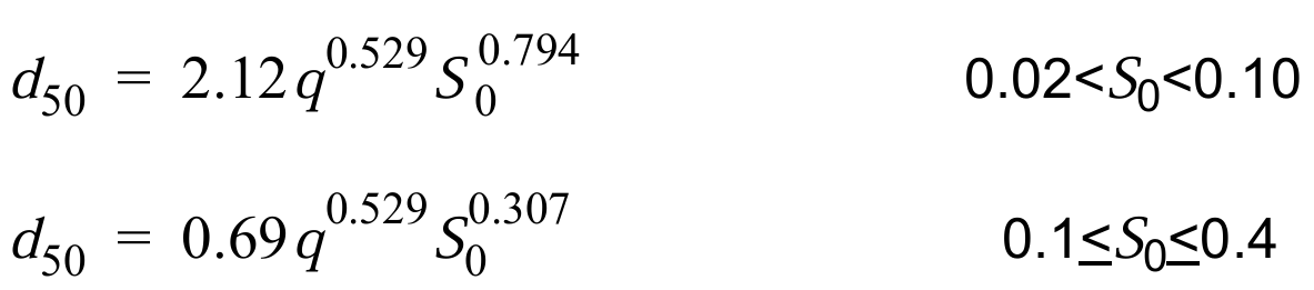 d50= the median diameter (ft), (Note, the tool convers US Customary rock diameters to inches)