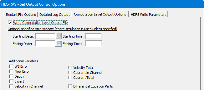 Download page Viewing Computational Level Output for Unsteady Flow.
